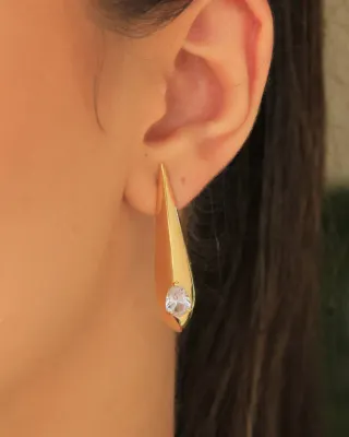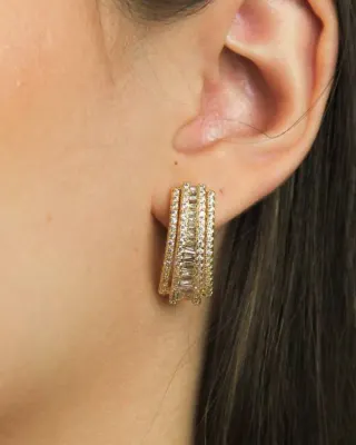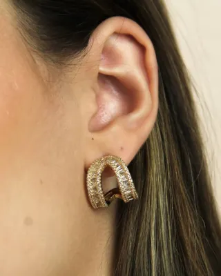 Brinco Croissant Cravejado em Zircônia