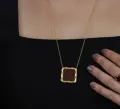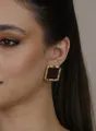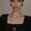 Conjunto Colar e Brinco Quadrado trabalhado em pedra acrílica
