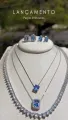 Conjunto Colar e Brinco Quadrado Turmalina Azul